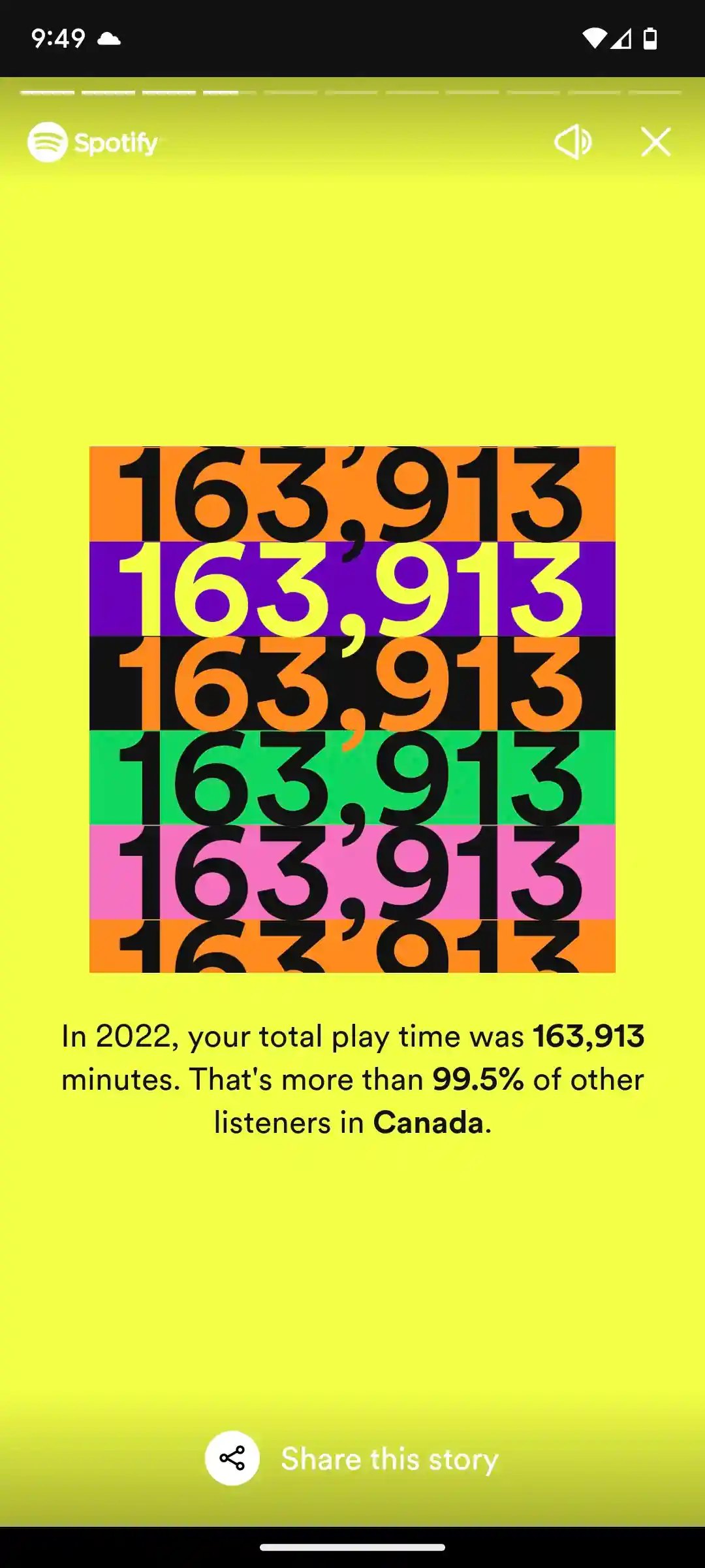 Top 99th percentile in Canada for total playtime on Spotify